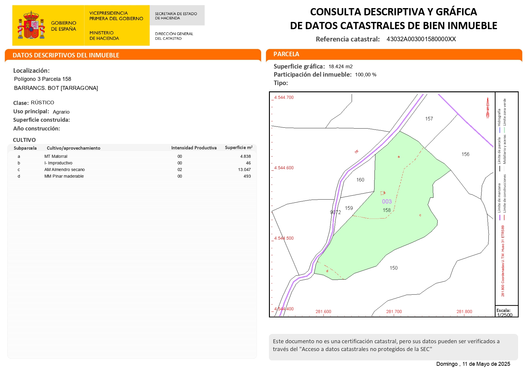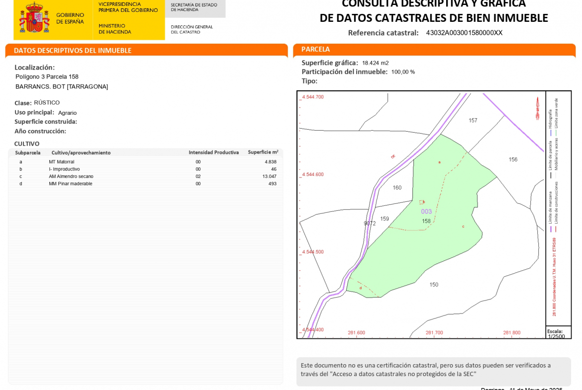 • Superficie de la finca: 1,8424 ha